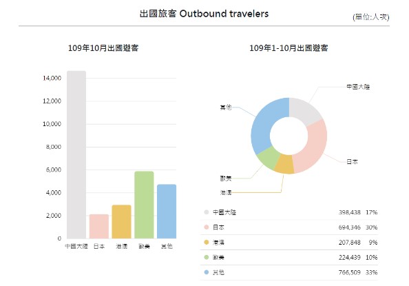 - 台灣出國目的地統計數據 2020 年 1-10 月