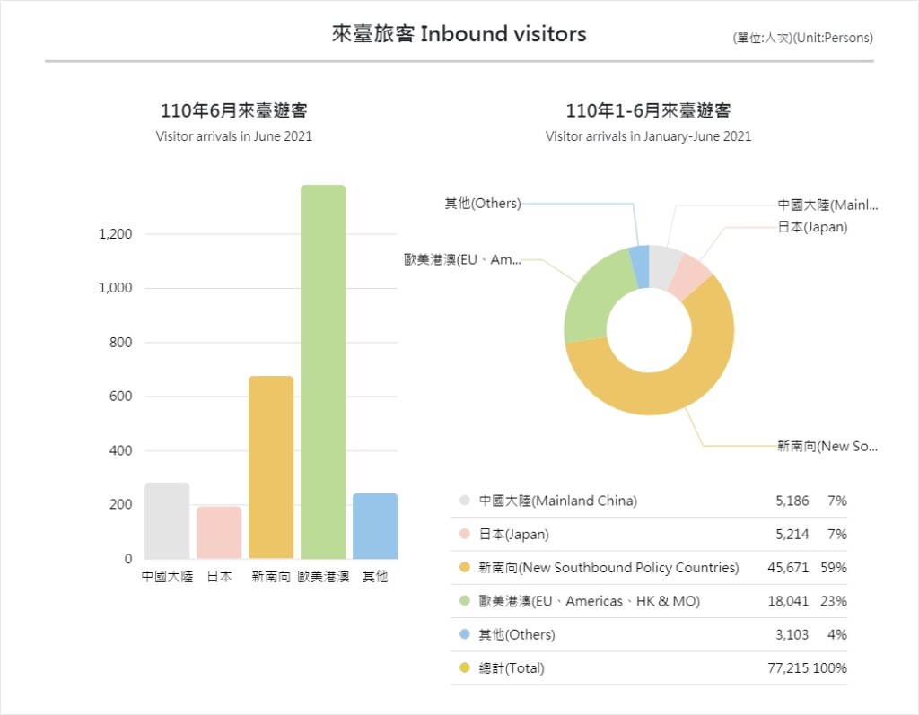 - 來臺旅客統計數據 2021 年 6 月