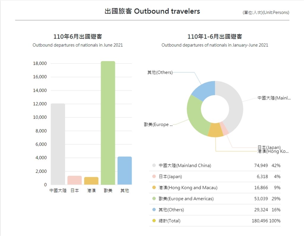 - 台灣出國目的地統計數據 2021 年 6 月