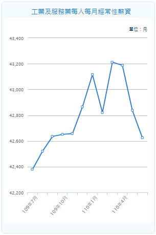 - In June 2021, the average regular salary of all workers (including domestic and foreign full-time and part-time employees) was NT$42,625, a decrease of 0.50% compared with last month but a 0.94% increase compared with the same month last year.