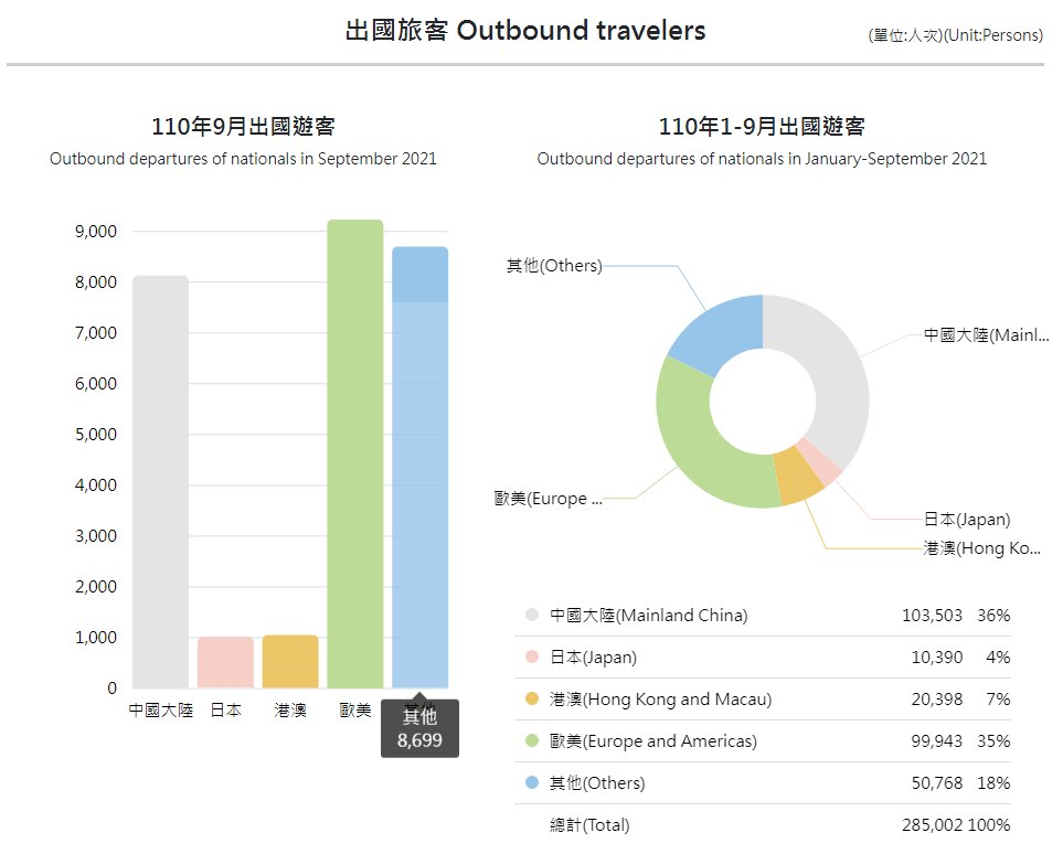 - Taiwan Outbound Departure Statistics, January-September 2021