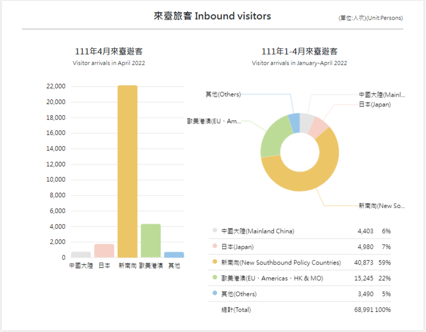 111年4月來臺旅客為29,760人次,與去(110)年同期相較,成長66.79%。