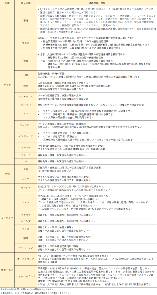 - 国境管理の更なる規制緩和、PCR検査要件の撤廃