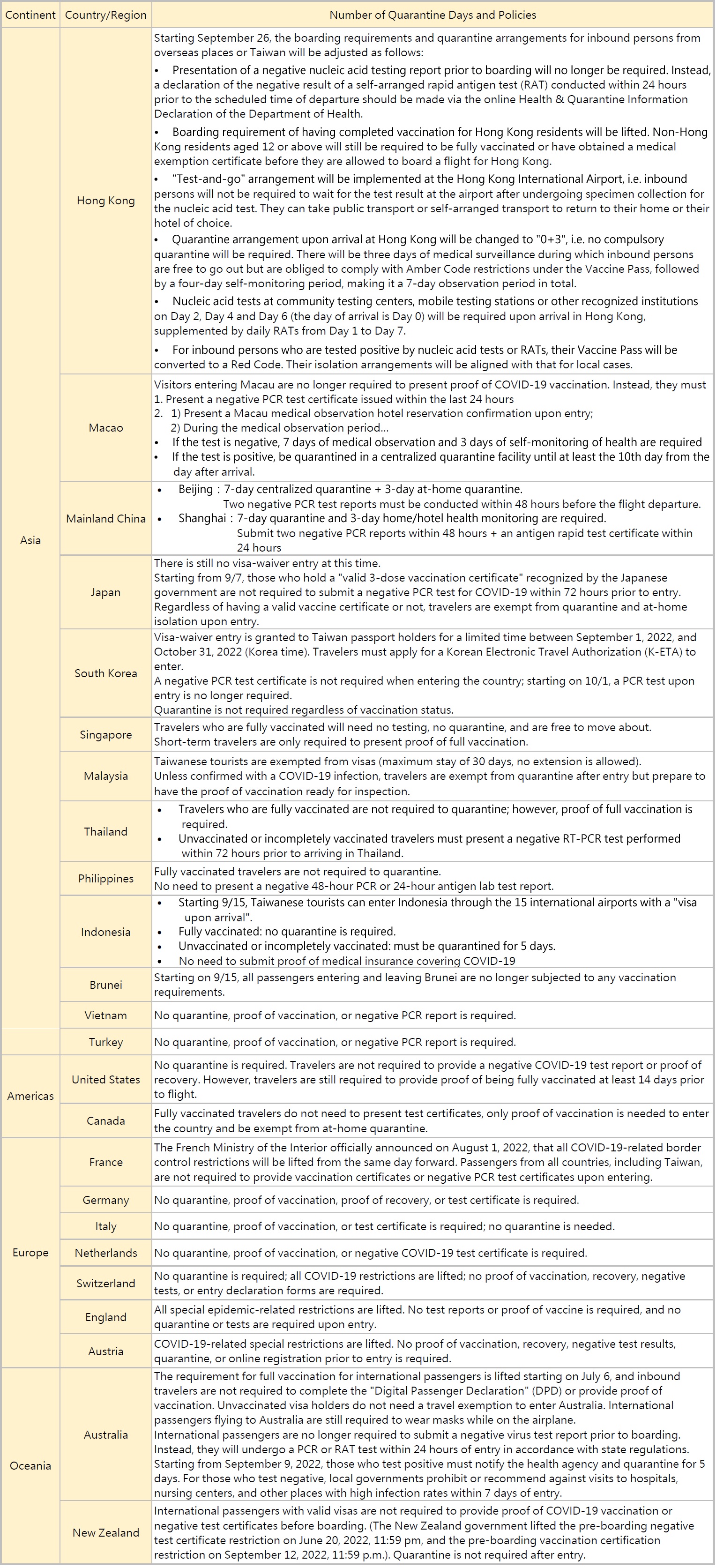 *The information below is for your reference only. Please review the country’s official latest announcements for the most up-to-date detailed information.