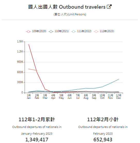 - 台灣出國目的地統計數據 2023 年 2月