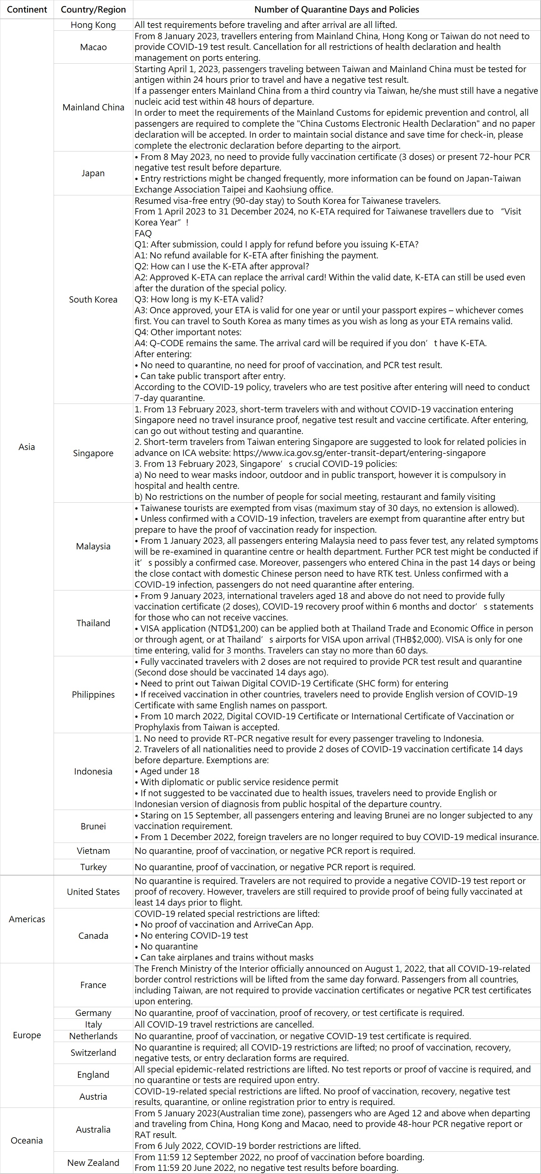 - Taiwan Outbound Departure Statistics for March 2023