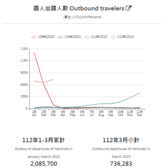 2023年3月に台湾を訪れた観光客は486,171人で、前年同期比2326.49%の成長となりました。