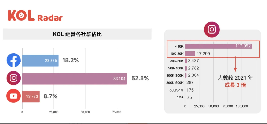 AI企業のiKalaは、本日(27)日、自社製品「KOL Radar」を通じて、2022年に台湾のインフルエンサーがFacebook、Instagram、YouTubeなどのSNSに投稿した内容をクローリングした「2023 インフルエンサーマーケティングトレンド レポート」を発表しました。 1年以上更新されていないインフルエンサーのソーシャルアカウントを除外することで、インフルエンサーマーケティングの3大トレンドをまとめ:
