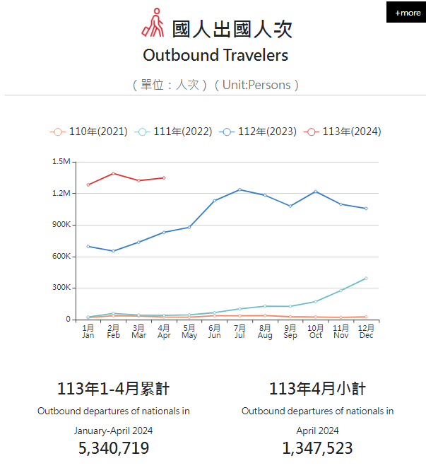 - 2024年4月の海外渡航者数は1,347,523人で、昨年同月の830,184人と比べて63.32%の成長に達した。