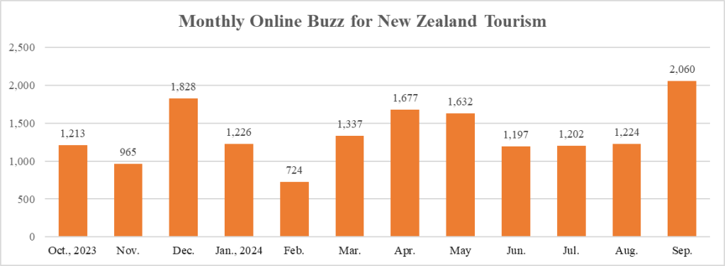 Note: This online insights analysis is based on the “OpView Social Sentiment Database,” which compiles and observes the number of online discussions related to “New Zealand tourism.”