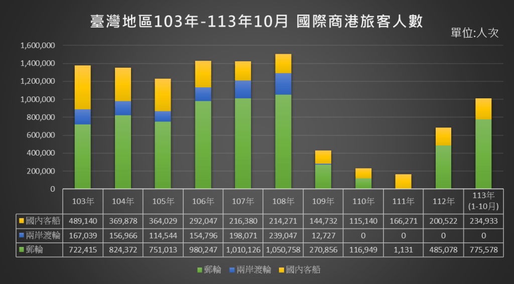 資料來源:台灣港務(股)有限公司,依據各港務分公司進出港旅客人數彙整編製