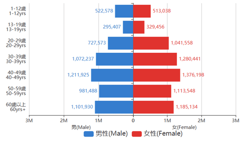 2024年1~9月 累計台湾人出国者数の年齢別及び男女別分布