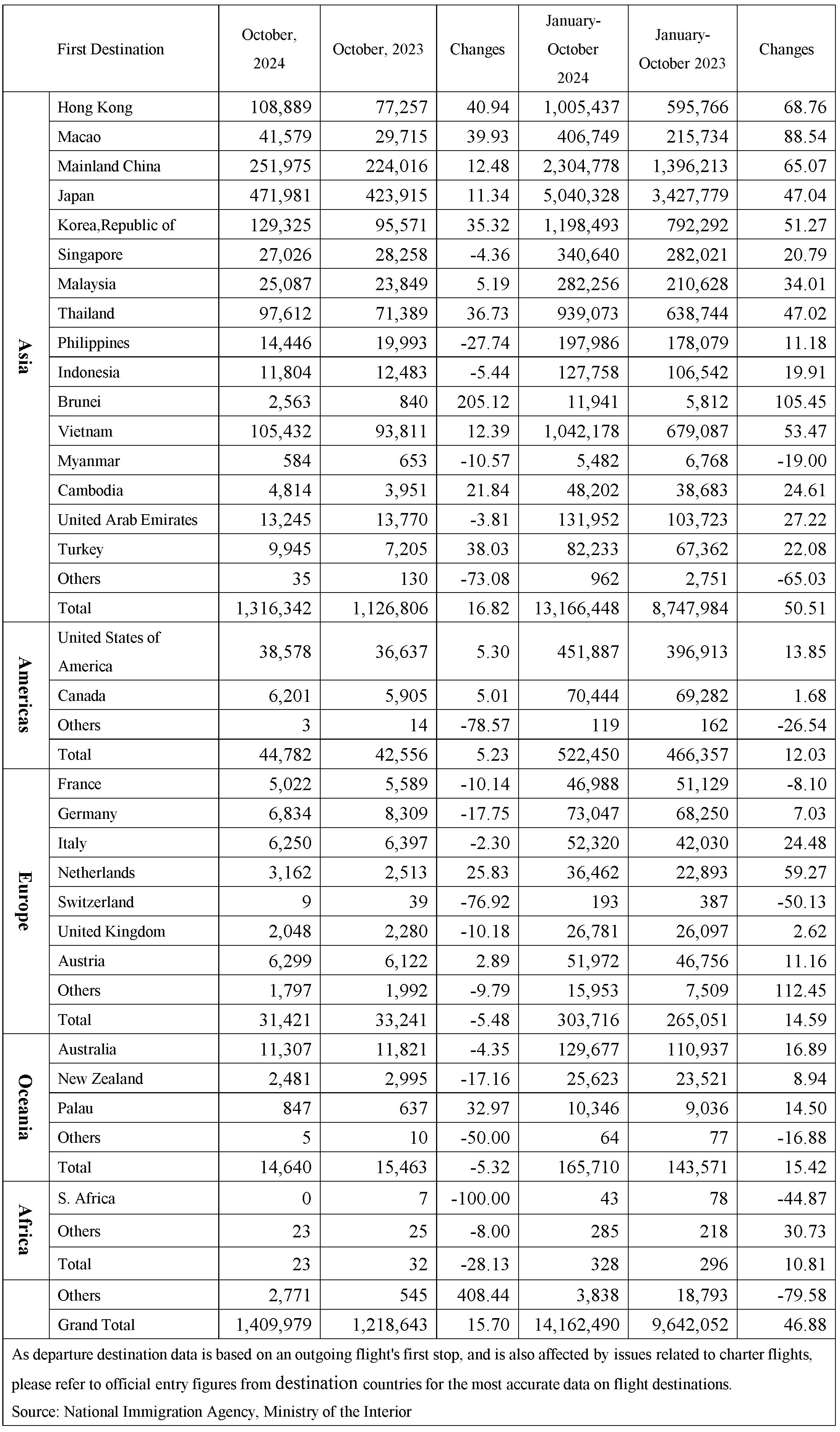| Outbound departures of nations in October 2024 1,409,979 |