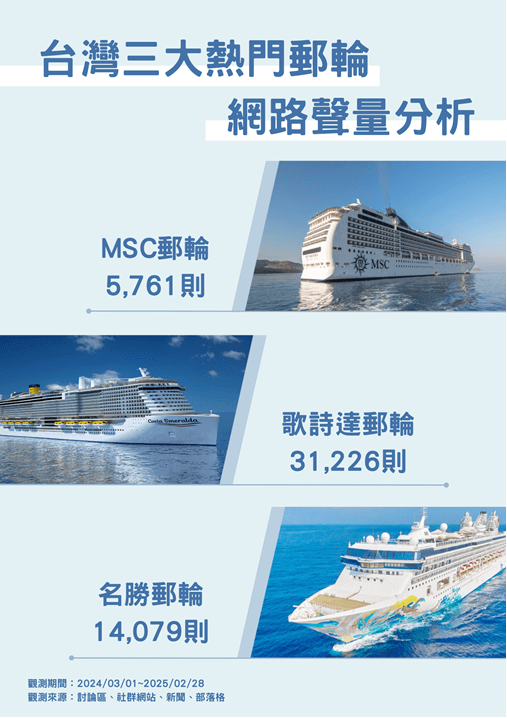 ● MSC郵輪、歌詩達郵輪、名勝郵輪 網路聲量比較
