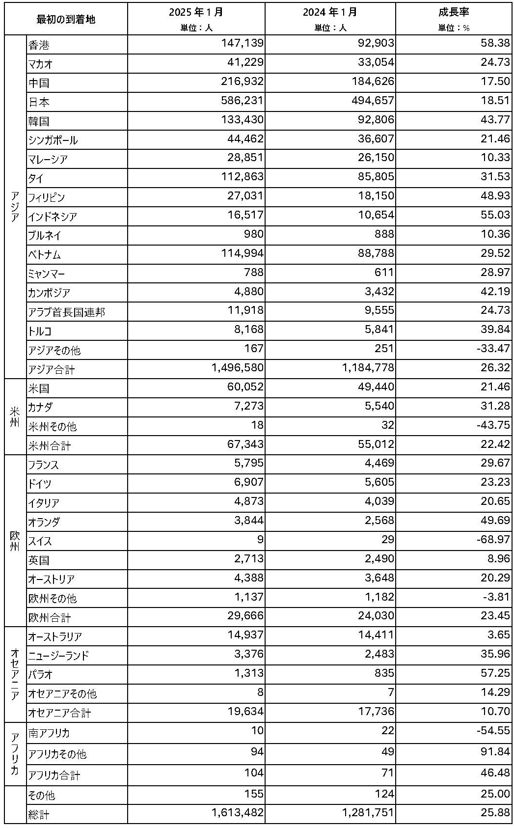 | 2025年 1月 出国人数 1,613,482 |