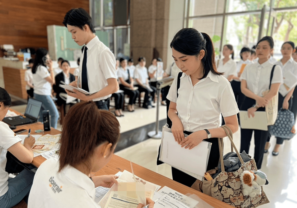 タイガーエア台湾は3月末に台湾南部の高雄を拠点とする客室乗務員の募集を発表、約2週間で2,000人近くの応募があり、4月26日、書類審査に合格した約1,000名を対象にした1次試験が行われた。2次試験は5月3日に行われ、採用された場合は2025年下半期に入社し、8週間の研修を受ける。
