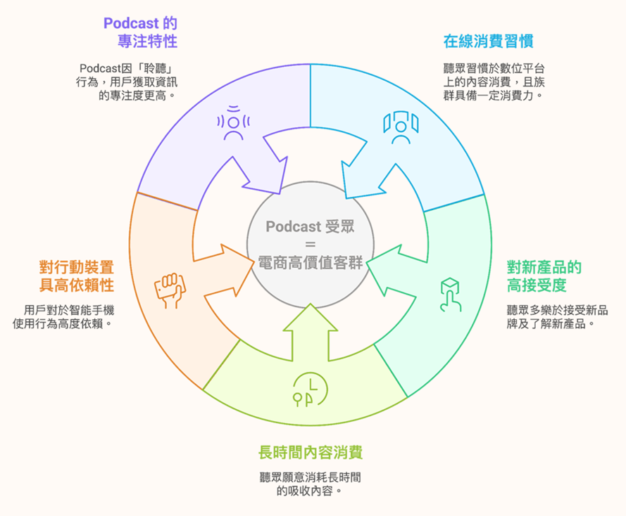 デジタルメディアの急速な発展に伴って、ポッドキャストは大衆が情報や娯楽を得る重要なソースとなった。ラジオ放送に比べてより手軽に聴け、番組も多様化している。よく利用されているホスティングプラットフォームは「Apple Podcast」や「Spotify」、また、台湾現地のサービスである「SoundOn」、「Firstory」などがある。