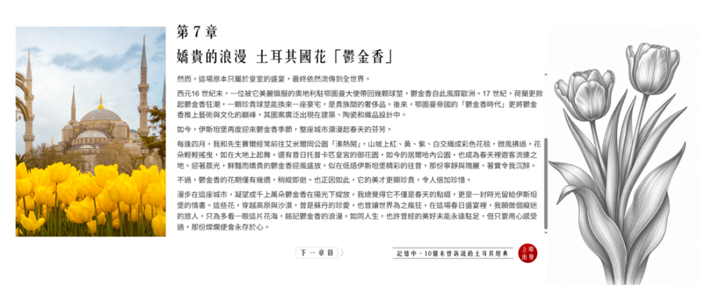 トルコとスペインの旅の魅力を深く感じてもらうため、今回のプロモーションでは、旅行の行程を小説形式に置き換えるという非常に独特なアプローチ方法を採用、「旅の毎日が全て、物語の始まり(旅行的每一天 都是故事的起點)」をコンセプトに設定した。小説形式のコンテンツは、作家3名を招請し、連載方式で特設サイトに掲載した。