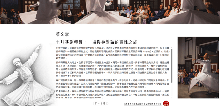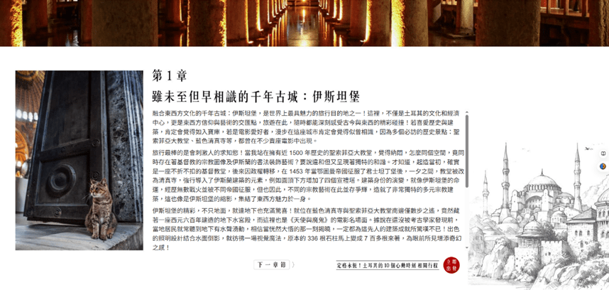 點擊各章節 內文頁面呈現 將土耳其行程放置下方導購