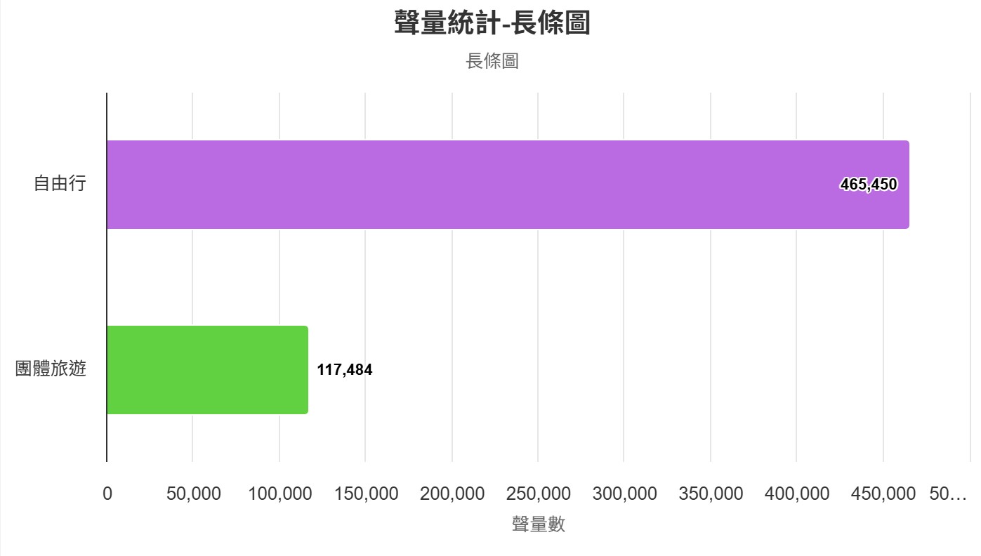 According to OP View’s online volume statistics, independent travel (FIT) generates significantly more online buzz than group tours. Independent travel accumulated a total volume of 465,450 mentions, accounting for 79.8% of the overall travel-related discussions online. In contrast, group tours had only 117,484 mentions, making up 20.2% of the total. This indicates that the majority of online travel discussions currently favor independent travel, suggesting that consumers tend to prefer planning their own itineraries and value flexibility and personalized travel experiences. While group tours still maintain a certain level of attention, their popularity is clearly lower in comparison.