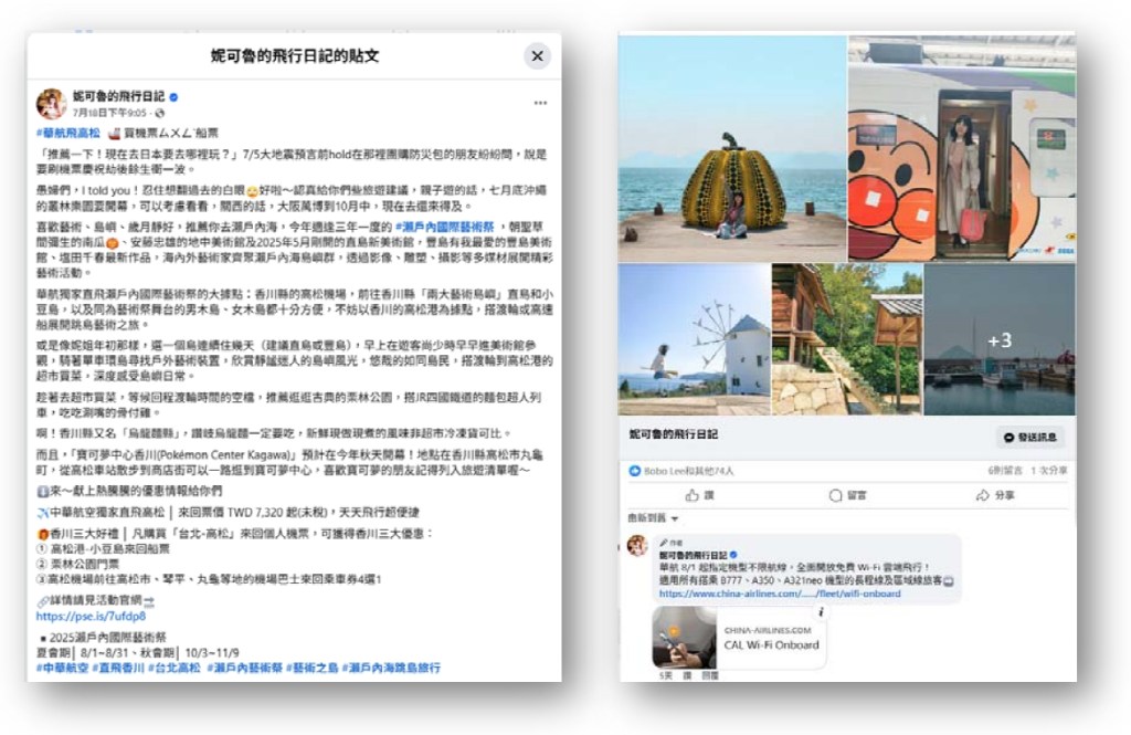 華航天天直飛香川 (高松),每周7班,搭配「 2025瀨戶內國際藝術祭 」吸引消費者前往香川旅遊。