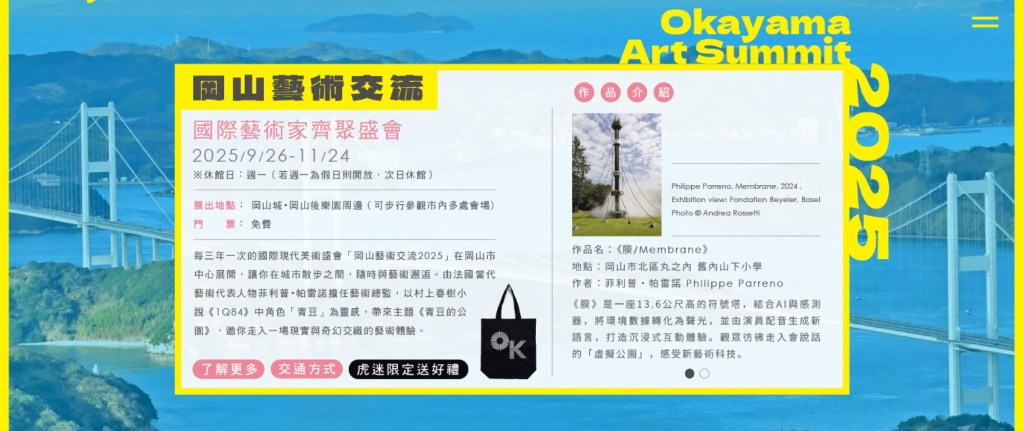 岡山で実施された4つのアートイベントを軸に、芸術という切り口で満喫する、ひと味違う新鮮な岡山旅行の魅力を訴求した。